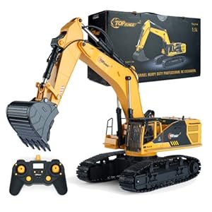 Top Race Ferngesteuerter RC Bagger, 22-Kanal Hobby RC Traktor Spielzeug, Baustellenfahrzeug mit Licht und Sound für Hobbyisten Jungen und Mädchen ab 5 Jahren, verwende mit unserem RC Kipper