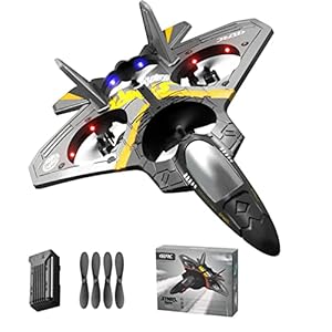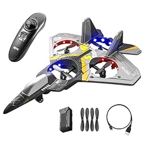 【 Einfach zu steuern 】:Unser V17 Jet Fighter RC Flugzeug verfügt über eine verbesserte Fernbedienung, Schwerkraft+Wippe Steuerung und eingebaute Selbststabilisierung des Kreiselsystems, die einfach zu steuern und zu fliegen macht. Alles, was Sie brauchen, ist, den Schalter zu drücken und den Joystick zu ziehen, um die Kunstflugzeuge einfach zu steuern.