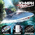 Freiheit für mehrere Spieler und LED-Lichter: Beherrsche die Gewässer mit diesem schnellen RC-Boot-Spielzeug, das über eine 2,4-GHz-Anti-Interferenz-Steuerungsfrequenz verfügt, die es dir und deinen Freunden ermöglicht, gemeinsam in Pools, Seen oder anderen Wasserarenen zu fahren, ohne dass sich die Signale kreuzen. Sein Coolness-Faktor wird durch die LED-Lichter verstärkt, die durch die haifischähnlichen Augen und Rücklichter leuchten und dieses Boot zu einem atemberaubenden Spektakel machen, wenn es durch das Wasser gleitet.