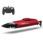 Das ferngesteuerte Boot misst 35,5 x 10 x 8,5 cm, die Reichweite der Fernbedienung beträgt ca. 150 m, reibungslosem Betrieb und einfacher Bedienung